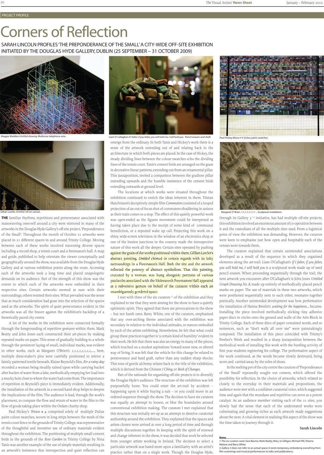 Preponderence of the small, by Sarah Lincoln, Doughlas Hyde Gallery 2009.